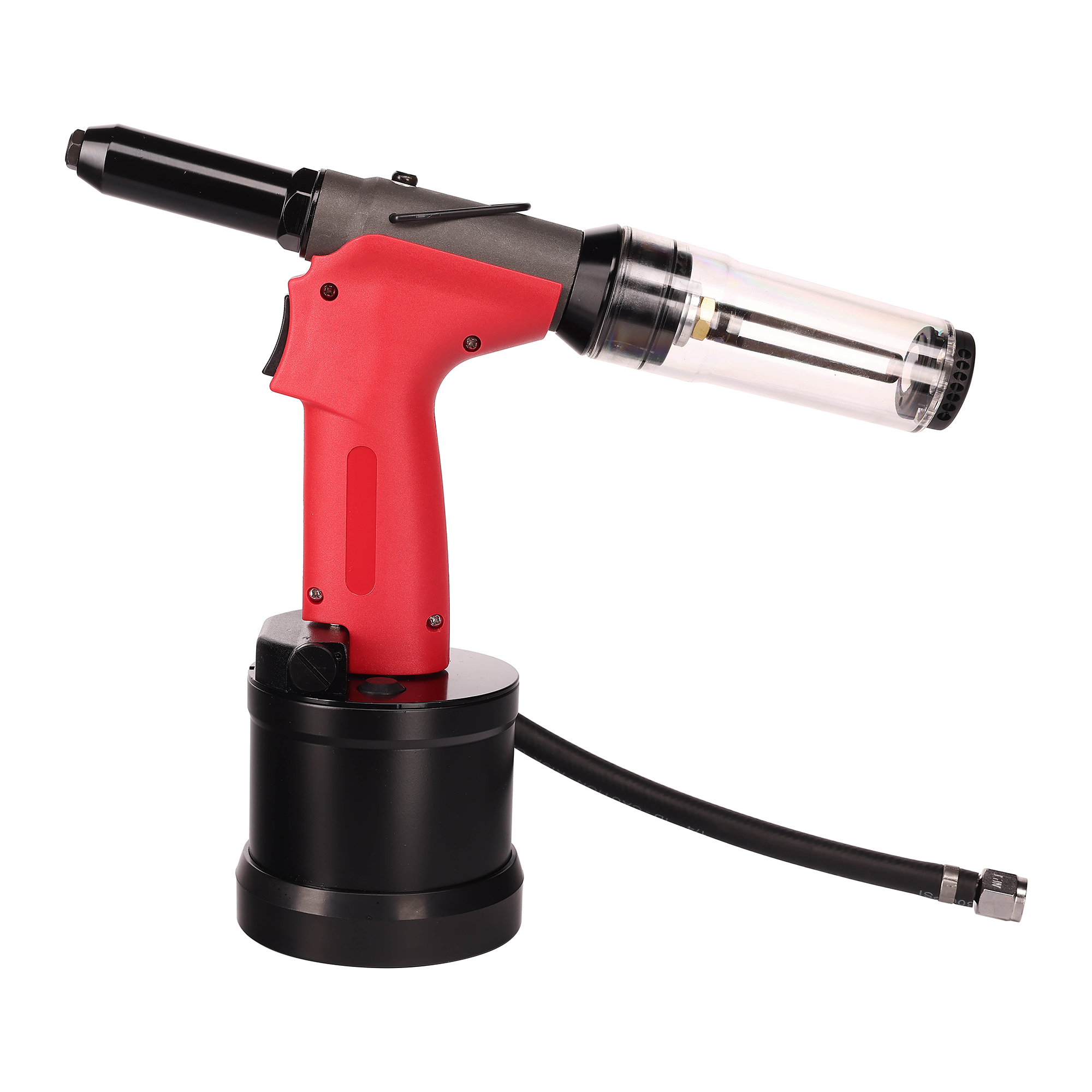 | 轻巧型、高强度工具 长行程,震动小,噪音低 一次性拉断铆钉 自备吸钉功能,吸钉阀调节气量,安全退订 CNC机加工部件,世界品牌密封,工具寿命长 可拆卸集钉瓶 操作便捷,维修简单 |